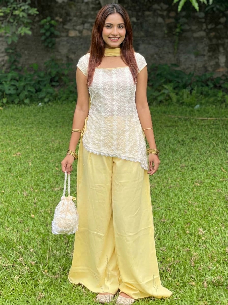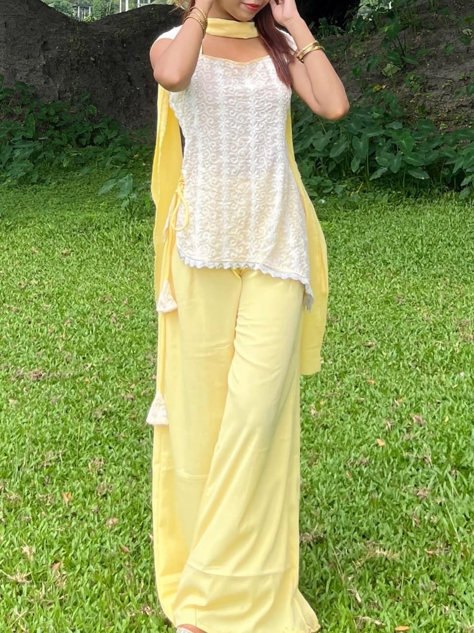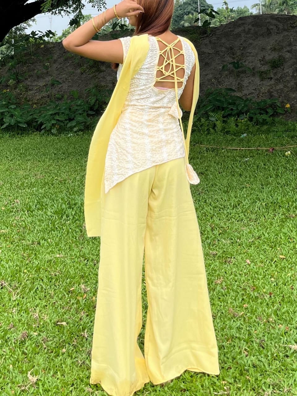 White Embroidered High-Low Kurti & Yellow Wide-Leg Palazzos (Copy)